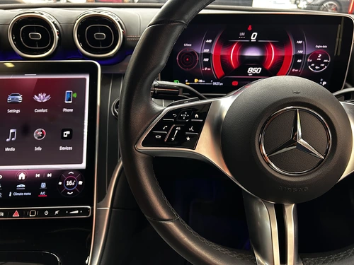 The 2024 Mercedes-Benz C-Class C 220d Auto is a refined and efficient executive sedan, blending luxury with cutting-edge technology. Powered by a smooth 2.0-liter diesel engine, it offers impressive fuel efficiency while meeting stringent Euro 6 emissions standards. The automatic transmission ensures seamless gear shifts, delivering a comfortable and composed driving experience. Inside, the C 220d features a high-end interior with premium materials, advanced infotainment, and driver-assistance systems. It's an ideal choice for those seeking sophistication, performance, and eco-conscious engineering in one sleek package.